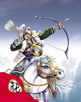 梁山神射手花荣为中国著名小说《水浒传》中的108将之一,有“百步穿杨”的功夫。在梁山泊英雄中排行第九,为马军八虎骑兼先锋使之首。原是清风寨副知寨,使一杆银枪,一张弓射遍天下无敌手,生得一双俊目,齿白唇红,眉飞入鬓,细腰乍臂,银盔银甲,善骑烈马,能开硬弓,被比作西汉“飞将军”李广,人称“小李广”。只因义兄宋江抱不平而被小人陷害,后被好汉王英等相救,上了梁山。受朝廷招抚后,在对辽国、方腊战役中屡立奇功,然在大哥宋江被高俅等害死后,与吴用一同在宋江墓前自缢身亡。