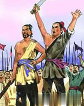 人物生平遇雨误期秦二世元年(公元前209年)七月,朝廷征发闾左屯戍渔阳,陈胜、吴广为屯长。 吴广、陈胜行至大泽乡(今安徽宿县东南),为大雨所阻,不能按期到达。按照秦法,过期要杀头。 在生死存亡的危急关头,陈胜毅然决定谋划起义。是夜,陈胜悄悄找另一位屯长吴广商议。吴广,阳夏(今 河南太康)人,也是穷苦出身,他们虽然结识不久,但已是无话不谈的朋友。陈胜对吴广说:“这儿离渔阳还有上千里路程,怎么也不能按期抵达渔阳了,我们现在的处境,去也是送死,逃亡被抓回来也是死,与其都是死,还不如选择为国家而死,干一番大事业? ”陈胜接着又对时局进行了分析:“天下人已经苦于秦朝统治很久了,老百姓对秦王朝的苛捐赋税、募役刑罚已经到了难以忍受的程度。我听说二世皇帝胡亥是秦始皇的小儿子,本不应继位,该继位的是长子扶苏。扶苏贤能,却被二世无故杀害了。还有一位名人叫项燕,曾是楚国名将,战功卓著,又爱护士兵,很受人爱戴。现在老百姓并不知这两个人是生是死,我们何不以他们的名义号召天下人起来反抗秦朝的暴政呢? ”吴广很佩服陈胜的胆略,觉得他的主意符合当时的人心,完全支持陈胜“死国”、“举大计”的决定。 发动起义古时候盛行预测吉凶的宗教迷信活动。陈胜和吴广经过一番谋划后,又专门找了一个算卦的卜问吉凶。 聪明的卜者知道了他们的用意,便说:“ 你们的事业能成功,且能为百姓立大功。可是你们把事情向鬼神卜问一下吧”陈胜、吴广听后非常高兴,并从卜者的话中悟出了借鬼神“威众”的启示。 于是,他们用朱砂在一块绸帕上写了“陈胜王(wàng)”三个大字,塞到渔民捕来的鱼肚子里。 戎卒们买鱼回来吃,发现了鱼腹中的“丹书”,都觉得惊奇。 与此同时,陈胜又让吴广潜伏到营地附近一座荒庙里,半夜里在寺庙旁点燃篝火装作鬼火,模仿狐狸声音,大声呼喊“大楚兴,陈胜王(wàng)”!正在睡梦中的戎卒们被惊醒,十分惊恐害怕。第二天戎卒们交头接耳,都指指点点地看着陈胜。加之陈胜平时就待下属热情和气,又把陈胜的形象跟楚国复兴联系在一起,陈胜在戎卒们心中的威望就更高了。 吴广见时机基本成熟,于是趁两个押送士卒的军官喝醉,故意 扬言逃跑,以激怒押送他们赴边的将尉。喝得醉醺醺的两个将尉果然大怒,责骂和鞭打吴广,引起士兵们不满,群起而哄之。吴广奋起夺下一名将尉佩剑将其杀死,陈胜也乘势杀了另外一名将尉。随后,陈胜把900名戎卒召集在一起,大声说道:“我们在这里遇上了大雨,已不能按期抵达渔阳了,而误了期限大家都要被斩杀,即便侥幸不被砍头,戍守边塞十分之六七的人也要送命。再说好汉不死便罢,要死就要取得大名声啊!王侯将相难道有天生的贵种吗? “ 陈胜铿锵有力的一番话,说出了大伙的心声,戎卒们对秦王朝的满腔怨恨和愤怒如同冲溃了堤坝的洪水奔泻而出,齐声高呼:“我们愿听从您的号令! ”于是大伙在陈胜、吴广带领下,袒露右臂作为标志,筑坛盟誓,按事先谋划,诈以公子扶苏、楚将项燕之名,宣布起义。 陈胜自立为将军,以吴广为都尉,一举攻下大泽乡,接着又迅速攻下蕲县县城。 中国历史上第一次大规模的农民起义战争就这样爆发了。 旗开得胜大泽乡起义后不到一个月,起义军已经拥有战车六、七百辆,骑 兵1000多人,步兵几万人。 下了陈。陈曾是战国后期楚国的都城。起义军进城几天之后,号令召三老(秦时掌管教化的乡官)、地方上的豪杰都来商议大事。三老豪杰都说:“将军(指陈胜)身披坚执锐,伐无道,诛暴秦,复立楚国之社稷,功宜为王。”陈胜于是自立为王,国号“张楚”。 张楚有张大楚国的意思。这是因为这一地区正是当年楚国的旧境。百姓怨秦的暴政,自然怀念楚的过去。陈胜、吴广就是借被胡亥害死的扶苏以及受到楚人尊敬的楚将项燕的名义号召起义的。因此建立的政权也以“张楚”为号。陈胜自立为王,国号张楚,任命吴广为假王,率军西击荥阳,命武臣、张耳、陈馀北攻赵地,邓宗南征九江,周市夺取魏地。 荥阳大败吴广率领起义军围攻荥阳不下,陈胜另派周文为将军西击秦。 周文的队伍在进军咸阳途中,不断扩大,到达函谷关时,已有兵车千辆,战士几十万,起义军进抵距咸阳百来里的戏(今陕西临潼东北),秦二世令少府章邯把修建骊山墓的数十万刑徒和奴隶编成军队迎战。 起义军接连受挫,周文自杀。 随着反秦斗争的开展,起义军内部的弱点和矛盾也逐步暴露。陈胜滋长了骄傲情绪,听信谗言,诛杀故人,与起义群众的关系日益疏远。派往各地的将领也不听陈胜节制,甚至为争权夺利而互相残杀。如围攻荥阳的起义军将领田臧与吴广意见不合,竟假借陈胜之命杀死吴广,结果导致这支起义军的全军覆灭。 历史评价司马迁《史记》:“①吴广素爱人。” “②天下匈匈,海内乏主,掎鹿争捷,瞻乌爰处。陈胜首事,厥号张楚。鬼怪是凭,鸿鹄自许。葛婴东下,周文西拒。始亲朱房,又任胡武。伙颐见杀,腹心不与。庄贾何人,反噬城父!” 扬雄:“或问陈胜吴广,曰:‘乱。’曰:‘不若是则秦不亡。’曰:‘亡秦乎?恐秦未亡而先亡矣。’” 郭正域:“自古乱亡之祸,不起于四夷,而起于小民。秦之强盛,兼并六国,卒之扰乱天下者,非六国也,乃陈胜、吴广一二小民也。” 轶事典故篝火狐鸣:这是陈胜、吴广假托狐鬼之事以发动群众起义的故事,夜里把火放在笼里,使隐隐约约