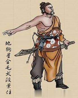 地狗星金毛犬段景住是《水浒传》中的人物,绰号金毛犬,涿州人氏,以盗马为生。他盗取金国王子的照夜玉狮子马,想献给宋江,却在途中被曾头市劫去,只得上梁山告知此事,结果引发了“晁盖战死、宋江上位”等事件。梁山大聚义时,排第一百零八位,上应地狗星,担任走报机密步军头领。征方腊时溺死于杭州外海,追封义节郎。